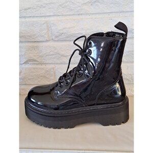 Gothic Platform Combat Patent Lace-Up Platform Boots Black Womens 7.5 Chunky
