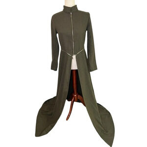 Gothic Punk Military Long Coat Jacket Small Olive Green Convertible Cosplay