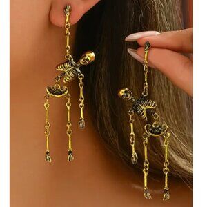 Gothic Punk Skull Dangle Earrings 3.3 Inches in Length