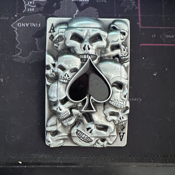 Gothic Skeleton Head Spade Belt Buckle Silver Black Biker Rocker Style
