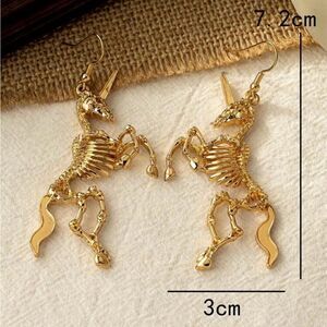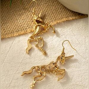 Beautiful Gothic Unique Gold tone Unicorn Skeleton Earrings with amazing design and engraved details. An amazing piece to add to your dark wardrobe for the Hollidays. 🖤
