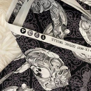 # textiles, fabric, sewing, skulls, bats, Halloween