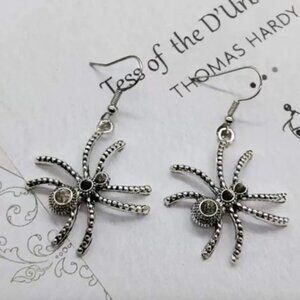 Gothic Spider Silver Tone Dangle Earrings Drop Halloween Witch Spooky Scary