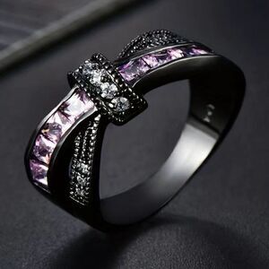 Gothic Style Ring Trendy X Shape Knot Design Inlaid Shining Zircons SIZE 10