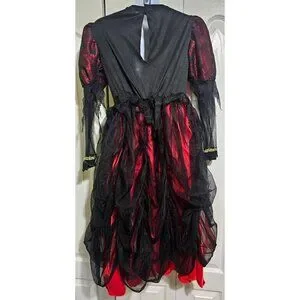 • Rubie's Red and Black Dress with Spiderweb Lace, Tulle, and Gold accents