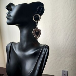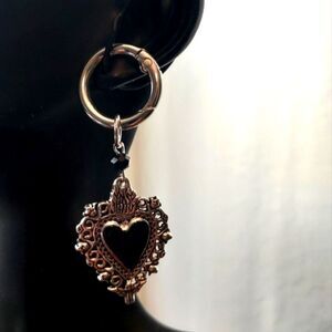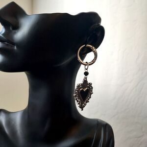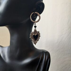 Trendy Mysterious Gothic Vampire Flamming Heart Onyx Dangle Earrings