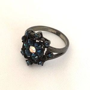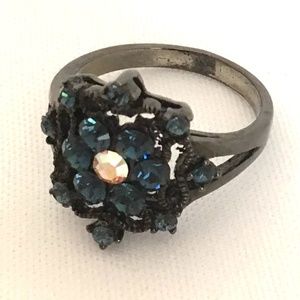 Gothic black ring with dark blue stones - Size 9