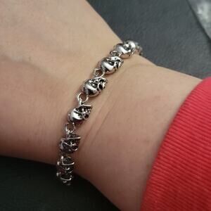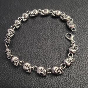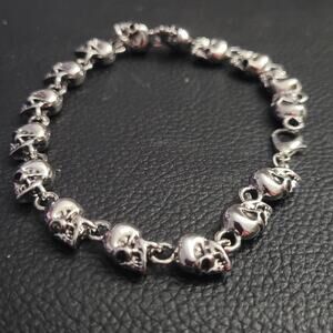 Tags: men's unisex women's bracelet accessories accessory jewelry gift present birthday halloween costume chunky silver alt alternative grunge goth gothic punk industrial edgy emo rock rocker metal biker skater skull skulls skeleton