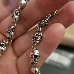 Gothic skull chain men's silver bracelet