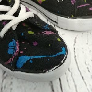 Gently used Gotta Flurt black high top sneakers with splashes of colorful paint. Size 11. Minor wear. Pictures show where some of the black paint has worn off.