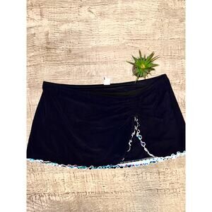Gottex 16W Black Ruffle Trim Swim Skirt Plus Size High Waist Skort Flirty Retro