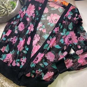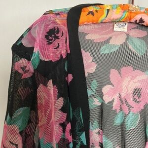 Gottex 80s Mesh Net Floral v neck 3 button beach pool cover up jacket medium