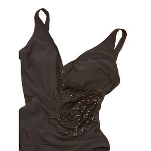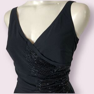 Gottex Black Beaded V-Neck Cross Over Surplice One Piece Swimsuit NOS $188