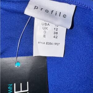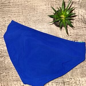 Add a splash of color to your swimwear collection with these eye-catching Gottex bikini bottoms in size 10/Medium. Featuring a ruched, twisted multi-color abstract waistband and a deep cobalt blue base, these bottoms strike the perfect balance between playful and flattering. The mid-rise cut and full coverage make them both stylish and functional—ideal for lounging poolside or catching waves.