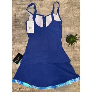 Gottex Blue Tankini Swimsuit Set Sz 12 | Ruched Underwire Top Skirted Bottom |