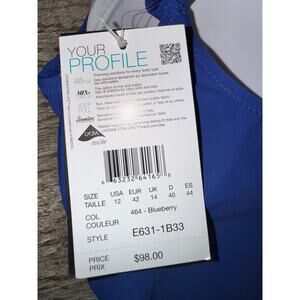 Stylish and supportive, this Gottex tankini swim set in size 12 is the perfect blend of comfort and resort-ready style. The royal blue top features flattering ruched detailing, adjustable straps, and built-in underwire support for a secure fit. Paired with a matching skirted swim bottom featuring side ruching and a flouncy hem with multicolor trim, this set offers modest coverage with a feminine touch.