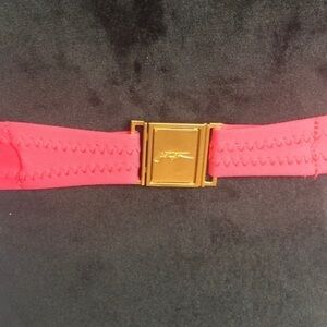 Gold toned clasp closure in back.