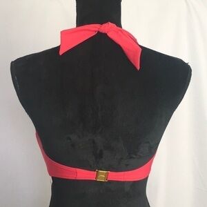 Halter style with tie behind neck.