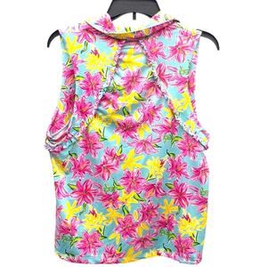 Gottex Floral Sleeveless Ruffle Golf Tennis Top Aqua Pink Yellow Women's Large