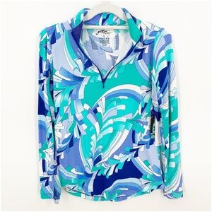 Gottex Lifestyle Zip Mock Neck UPF 50+ in Blue Martinque Sz XS