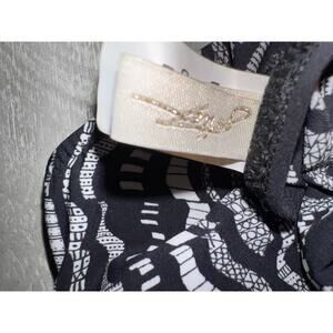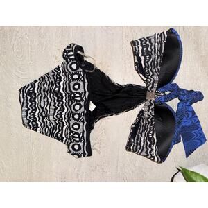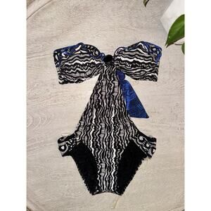 Turn heads poolside in this stunning Gottex monokini — a bold, high-fashion one-piece featuring an abstract wave print in black, white, and hints of deep cobalt blue. Designed with a sleek cutout silhouette, this suit delivers a modern take on retro-glam with a bandeau-style top, keyhole ring center, and a flattering full-coverage bottom.