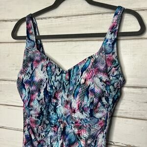 Gottex One Piece Swimsuit Multi Color Snakeskin Print Size 16