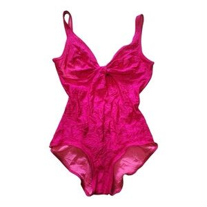 Dive into style with this Gottex one-piece swimsuit, showcasing a bold pink hue and a flattering plunging V-neckline. The adjustable shoulder straps and high-cut leg design ensure a comfortable and chic fit, while the form-fitting silhouette enhances your natural curves. Perfect for making a statement at the beach or pool.