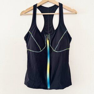 Gottex Profile Sport Black Full Zip Tankini Racerback Swimsuit Bathing Suit