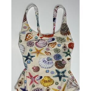 Gottex Round Neck One-Piece Swimsuit Sea Shells Starfish Size 14 23WS137