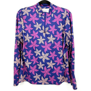 Gottex Starfish Activewear Shirt Women's M Moisture Wicking Rash Guard Swim Zip