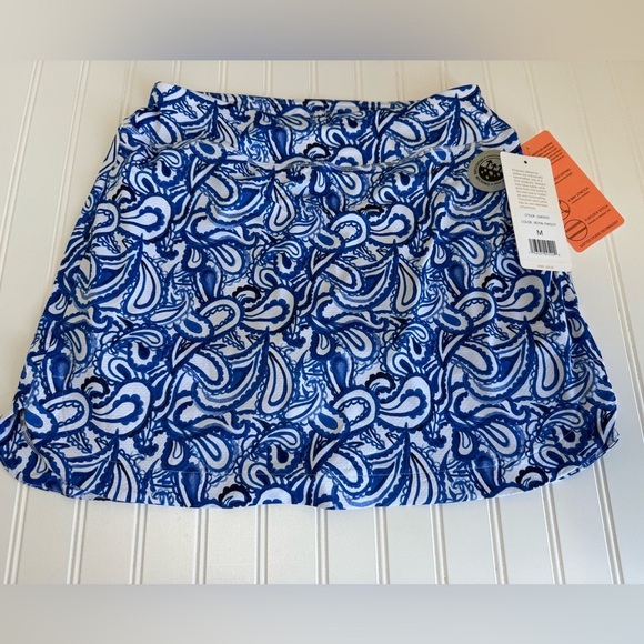 Gottex Women Golf Tennis Skort Skirt Medium Royal Paisley Built-in Shorts NEW