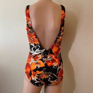 Blue by Gottex swimsuit orange black floral low back women’s size 12