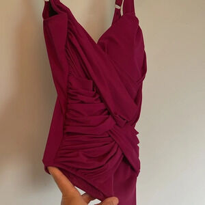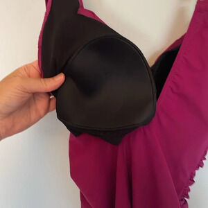 Gottex swimwear women’s size 12 one piece bathing suit, raspberry pink, scoop back, adjustable straps, v-neck, tummy control, built in bra cups that’s won’t slide or slip.