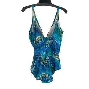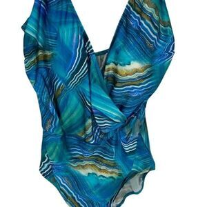 Gottex Womens Tourmaline Surplice Sleeveless One Piece Swimsuit Blue Size 18
