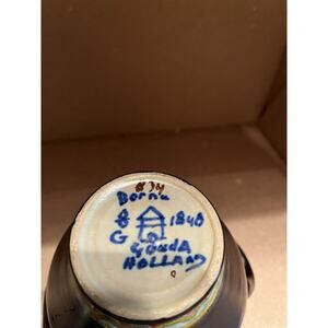 Gouda Holland Art Pottery Borne Orange Blue Ceramic Double Handle Pot 1848