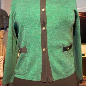 This green short cardigan goes perfectly for an old money look , it would look beautiful paired with a pencil or a pleated skirt with a good fierce eyeliner.