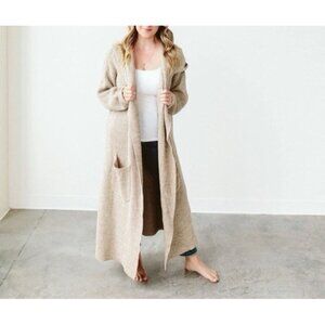 Goumi 100% Cotton Ribbed Chunky Knit Longline Cardigan Neutral Cozy Heavyweight