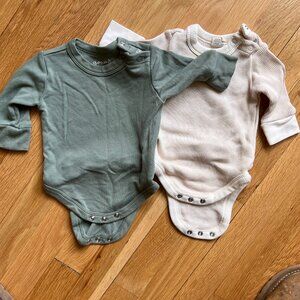 Super soft & well made. Set includes Oatmeal waffle knit & heather green onesie. Light wear, no stains. Size 3-6 months.