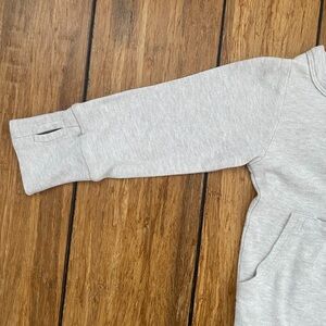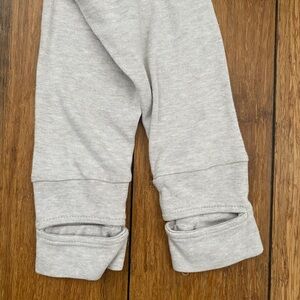 Goumi PJs in oatmeal. Pants and shirts have hand and foot covers in the cuffs and thumb holes. Font pocket on the shirt that is open in both the sides and top! Super cozy, good used condition, no stains.