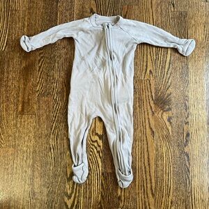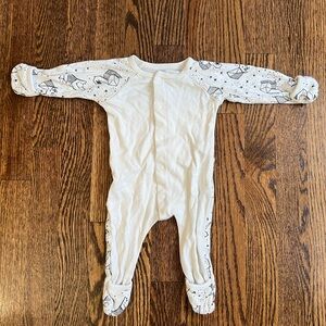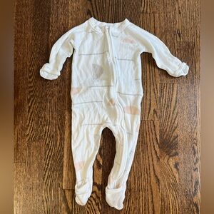 - two 3-6 month sleepers—one mushroom/taupe color, one white with pastel shape print