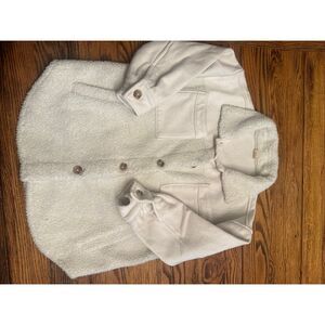 Goumi White Alabaster Sherpa Long Sleeve Button Down Farm Shacket Size 5T-6T