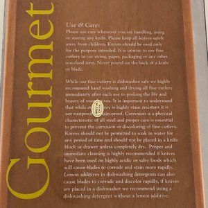 Pistol grip handles. Dishwasher safe. New, still in box. Would make a nice wedding gift.