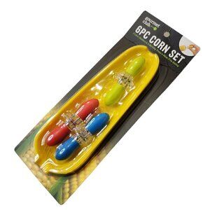 Gourmet Club 6 Pc Corn Set 3 Corn Holders & 3 Serving Trays