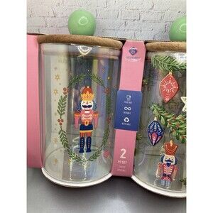 Gourmet Foods Eco Friendly Nutcracker Glass Christmas Jar Set of 2 With Lids
