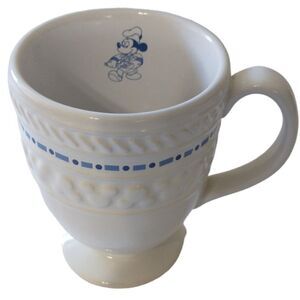 Gourmet Mickey Mouse Mug Coffee Cup Ceramic Blue White 12oz Pedestal Vintage 90s. Condition is pre-owned and vintage 1990s. No chips, cracks or discolorations. Holds about 12 ounces. Please see photos for detailed condition. Vintage 1990s.