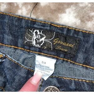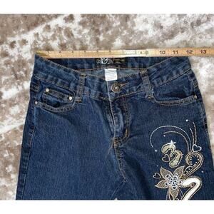 Govanni Jeans in dark wash straight leg SZ 3/4 embroidered thigh with stretch