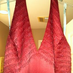 Stunning red halter gown with sequin bust and neck. Never been worn, tags still attached!