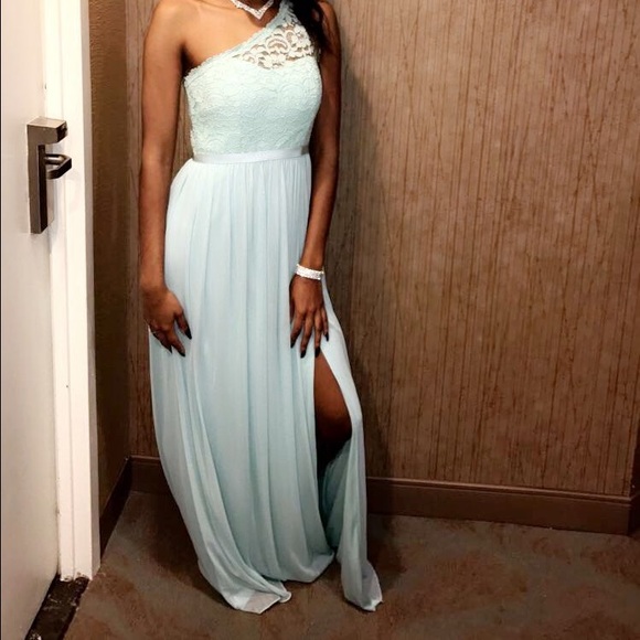Mint green/blue gown..was worn as a bridesmaid dress but also can be prom,homecoming, or ballroom dress...worn once for like 2 hours selling because no longer needed