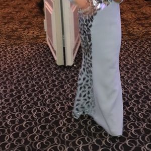 Custom made lightweight wool, mirrored appliqué gown. Worn once