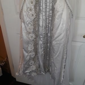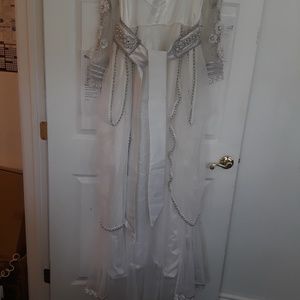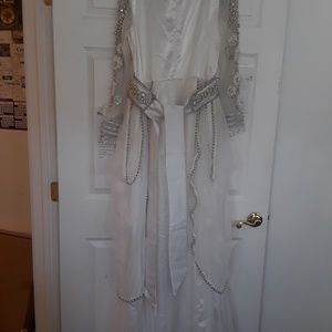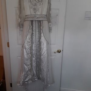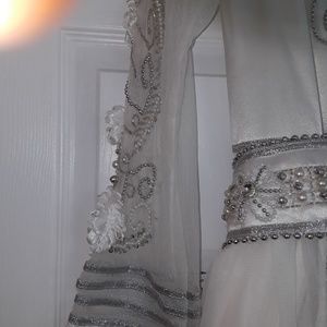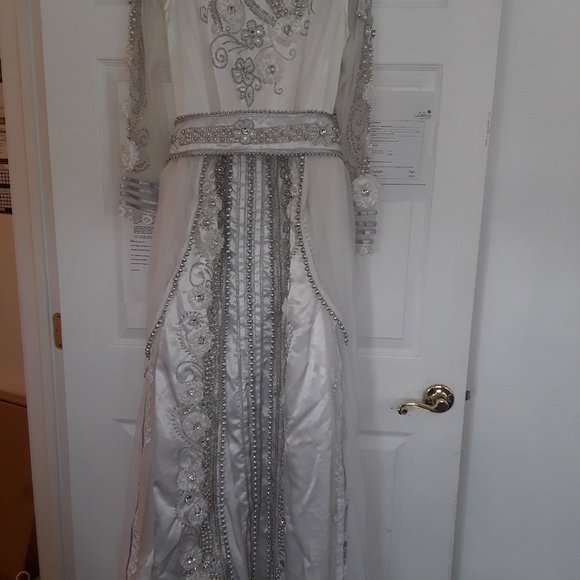 Custom made from Dubai. White caftan gown with white and silver beads, sheer beaded sleeves and beaded sheer train. Bought for my wedding but never worn.
